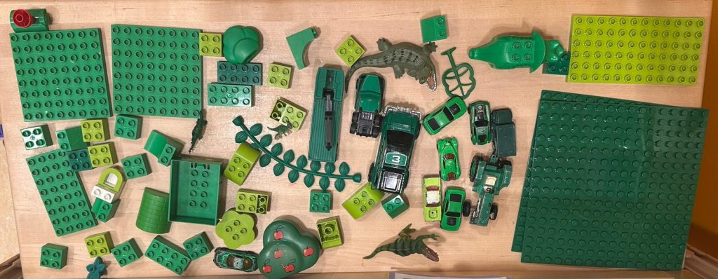 In dieser Woche drehte sich bei uns alles um die Farbe Grün. Die Kinder brachten von zu Hause grüne Gegenstände mit, die wir im Morgenkreis präsentierten. Auch in der Kita und beim Sparziergang in den Rehbergen begaben wir uns auf die Suche und fanden viele spannende Dinge in dieser Farbe.