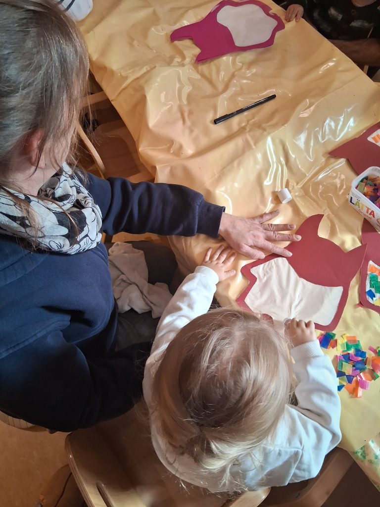 An einem herbstlichen Nachmittag trafen sich Kindern, Eltern und Erzieherinnen zum gemeinsamen Laterne basteln. Der Duft von Tee, Kaffee und selbstgemachtem Apfelkuchen lag in der Luft, während überall buntes Papier, Scheren, Kleber und kleine bunte Schnipseln bereitlagen. Es war ein schöner Anlass, um einmal auf andere Art miteinander in Kontakt zu kommen – nicht in der Hektik des Alltags, sondern in einer entspannten und kreativen Atmosphäre. Beim Basteln entstanden nicht nur wunderschöne Laternen, sondern auch viele kleine Gespräche, Lachen und gemeinsames Staunen.